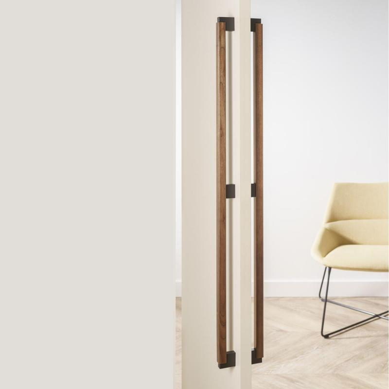 puxadores em alumínio e madeira